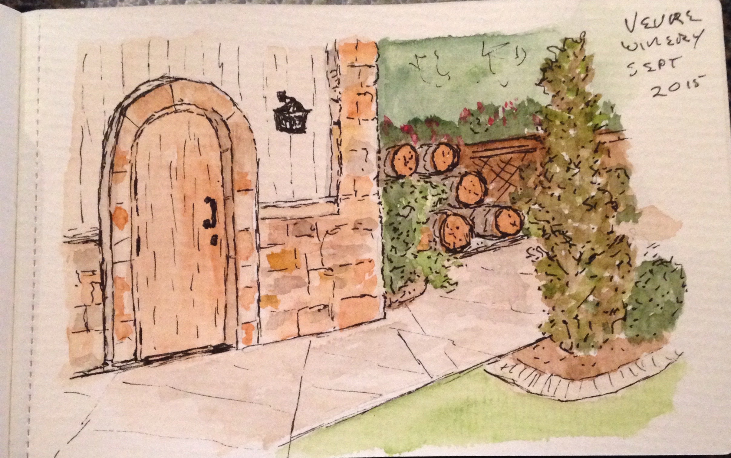 One of the perks of my travels is finding an hour or two to visit a new winery. This was quite a find. Vézer Family Winery in Fairfield, CA. I had a glass of the 2012 Estate Verdelho, just right for a warm afternoon of sketching.
