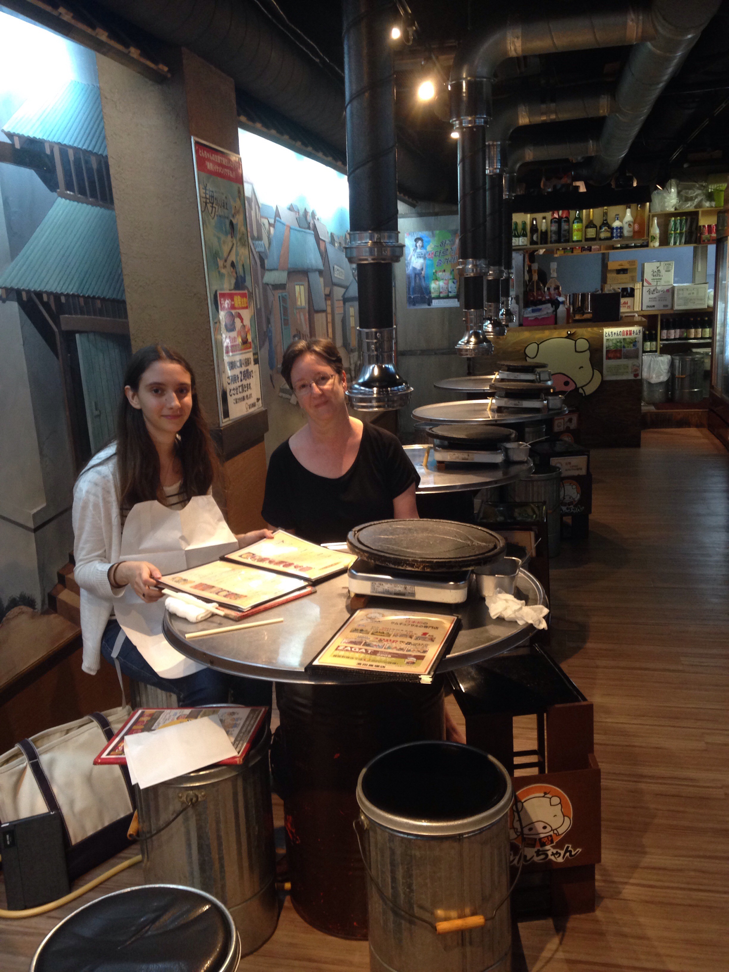 That night we met up with Rebeca, our niece. She has been here for almost a year attending Waseda University. We had a fabulous time touring her school, drinking peach iced tea at a student cafe, wandering through the gardens. She took us to a shrine and a temple on our way to Korean BBQ. (Kansas and Texas think they are the centers of BBQ, nope these folks beat them to it by centuries) I have been to Korean BBQ, but this one was so different, it was really casual, kind of an industrial retro decor, we sat on stools, while the staff cooked. You take the grilled meat, add a few condiments and it’s all wrapped in lettuce leaves, a Korean taco.