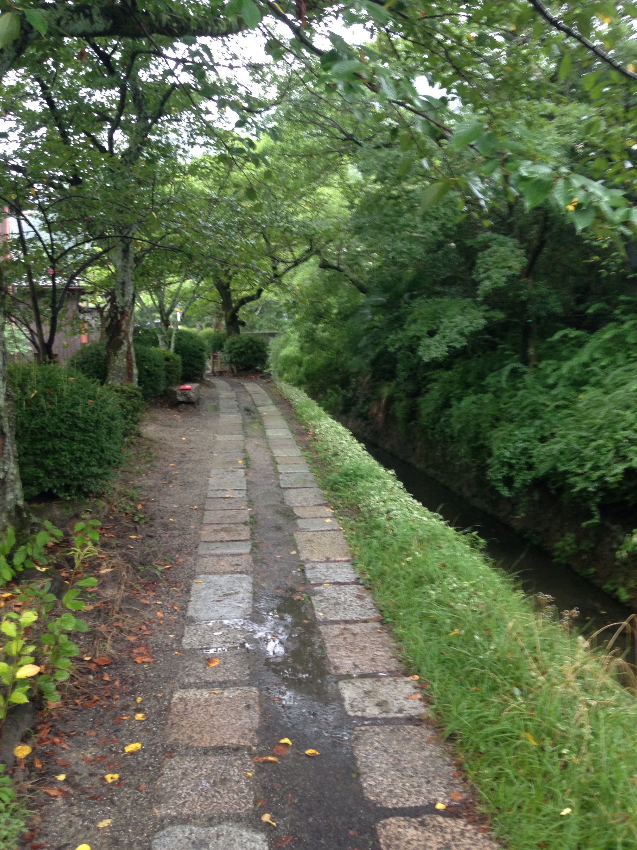 Tuesday was raining, serious rain. Like true Seattleites we were undaunted, yet we did take umbrellas, it was wet. We walked along the Philosopher’s Path, a pleasant walkway along a canal, our only companions the fish we watch din shallow water. Amazing how rain thins out the crowds.