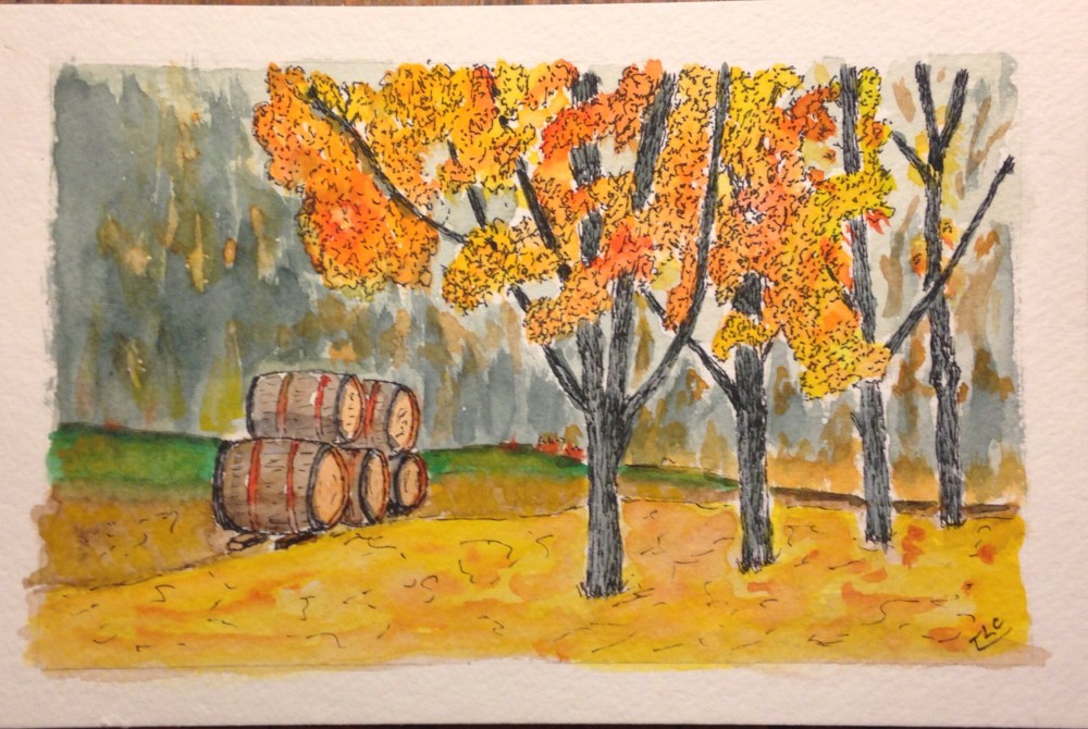Ink, Painting, pen, sketch Autumn wine barrels Posted by Terry Christopherson on January 28, 2017January 28, 2017 This is a second painting of autumn at Torii Mor Winery in Dundee. If Monet could do multiple paintings of a haystack, so can I. Share this: Click to share on Facebook (Opens in new window) Facebook Click to share on Pocket (Opens in new window) Pocket Click to email a link to a friend (Opens in new window) Email Click to share on Tumblr (Opens in new window) Tumblr Click to share on Pinterest (Opens in new window) Pinterest Click to share on Bluesky (Opens in new window) Bluesky Like Loading...