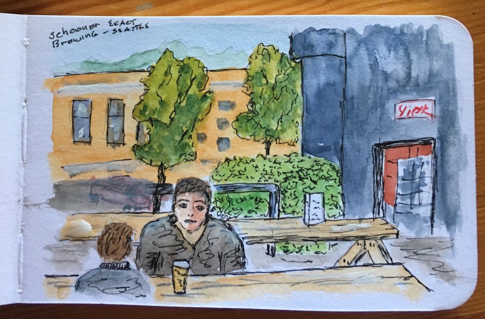 Ink, pen, sketch, Watercolor Schooner Exact, Seattle Posted by Terry Christopherson on September 27, 2017 Nice spot tucked in an industrial area on South 1st Ave. They have a menus that surprises many. Share this: Share on Facebook (Opens in new window) Facebook Share on Pocket (Opens in new window) Pocket Email a link to a friend (Opens in new window) Email Share on Tumblr (Opens in new window) Tumblr Share on Pinterest (Opens in new window) Pinterest Share on Bluesky (Opens in new window) Bluesky Like Loading...