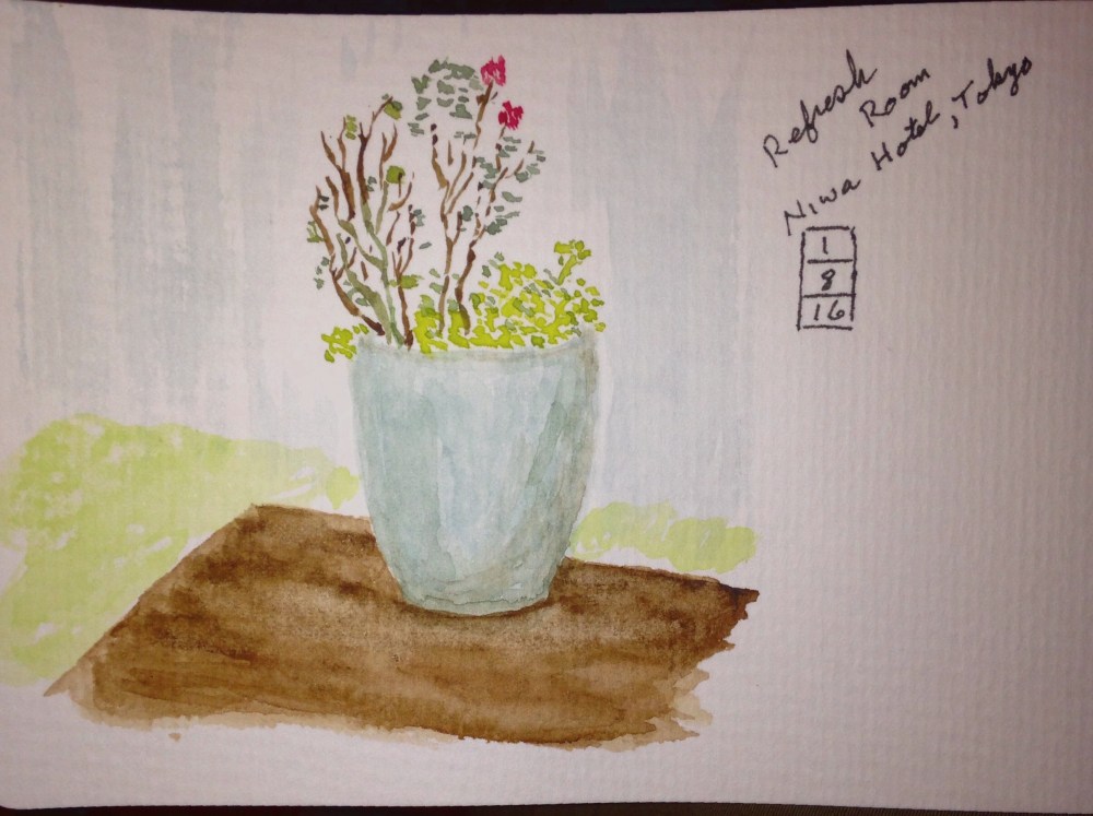 The plants and planter are from a quiet little hideaway at the Niwa Hotel, they called it a refreshment place, a pond and plants, on the third floor yet – a quiet place to refresh.