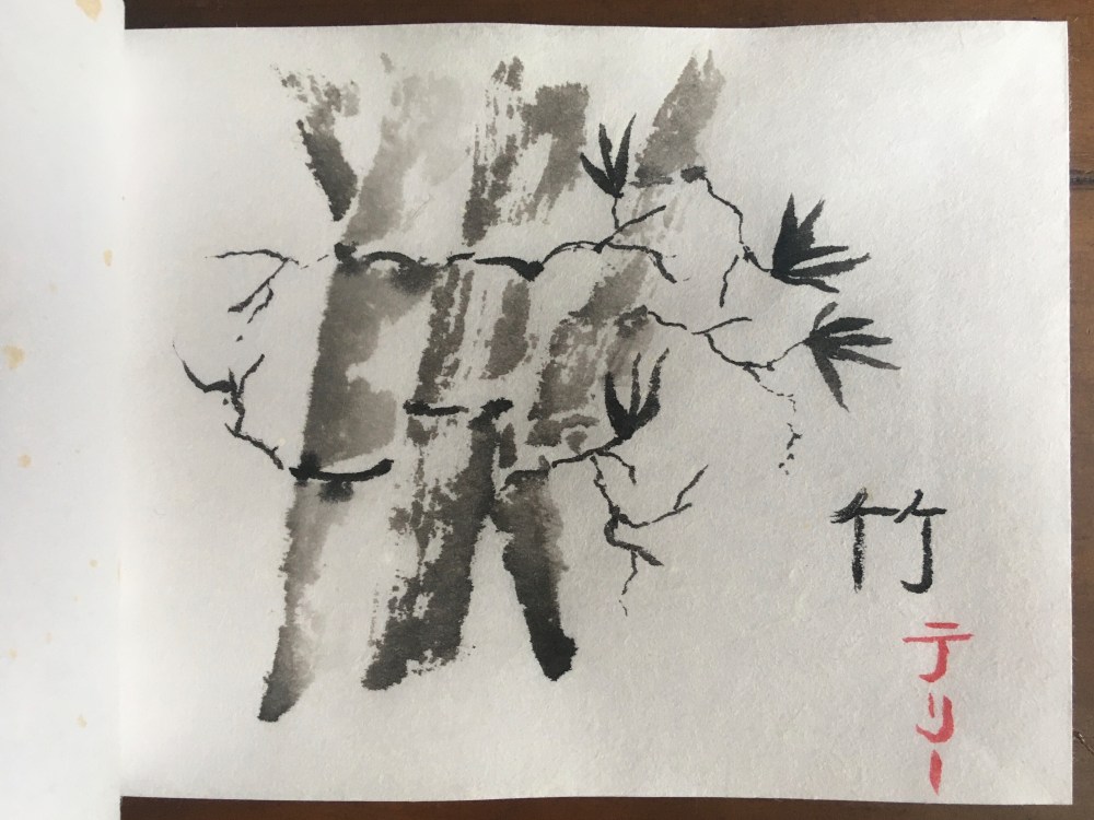 The first visit to a shop I bought a brush, mostly from size and looks. Nice bamboo looking handle, pointed bristles that were lightly colored at the base, brown at the tip. Little did I know how much I had to learn. It was not a watercolor brush, it is a Combination Sumi-e brush for ink painting.