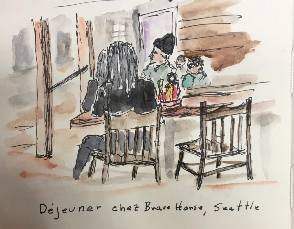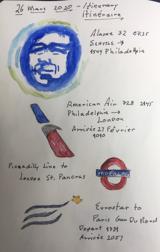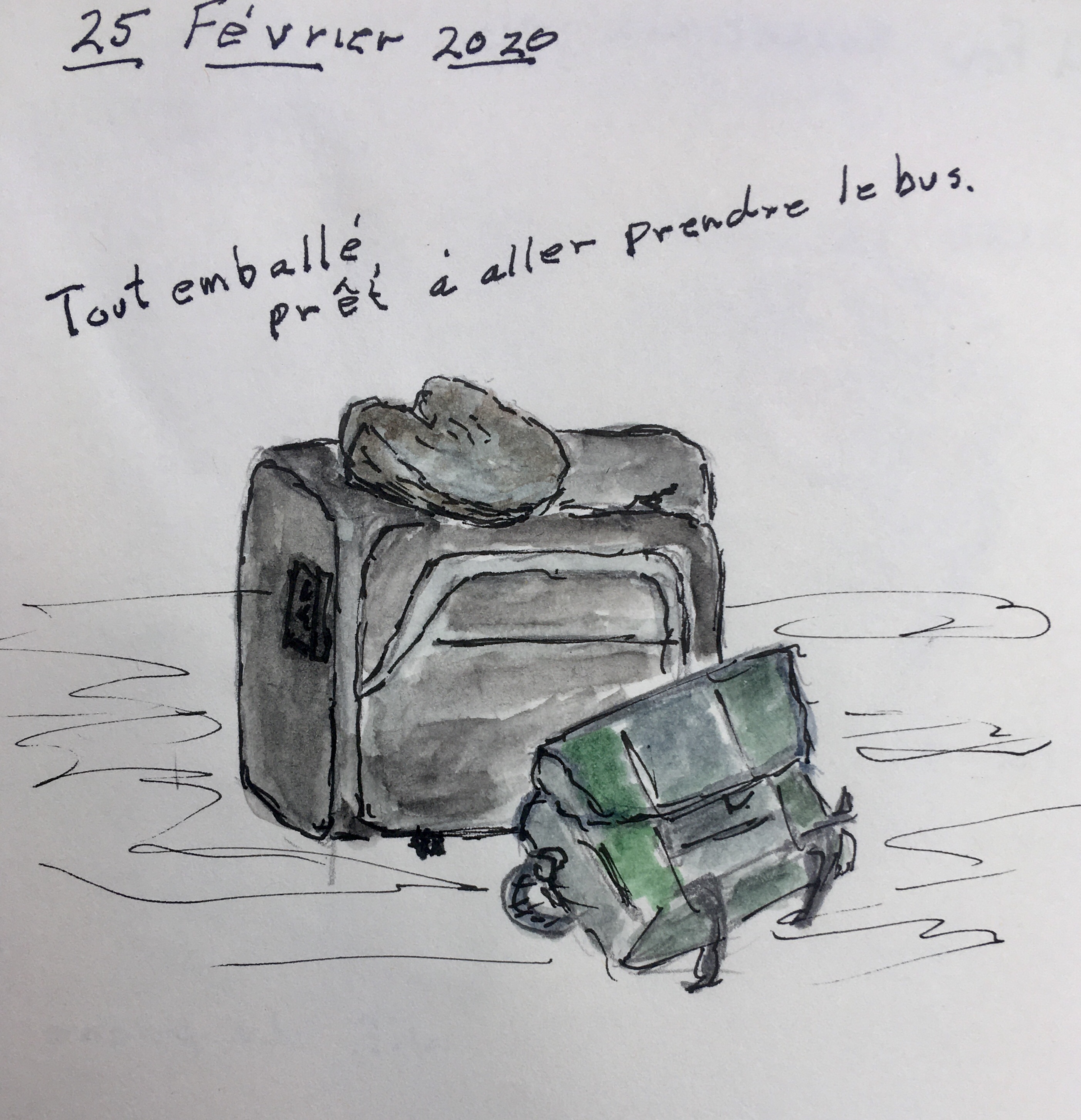One of my objectives is to sketch and journal, with all of the text in French. I am a long way from fluent so know there will be many errors. Some of you are fluent in French, I beg your patience and forgiveness. Here are sketches so far.
