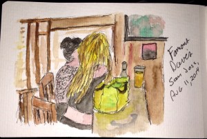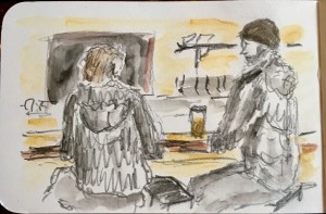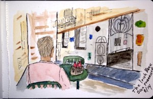 Cafes and pubs are so often the source of travel memories so that will be our topic: Sketching in the cafe. We will try our hand at sketching food and drink, as well as the ambience of the place.