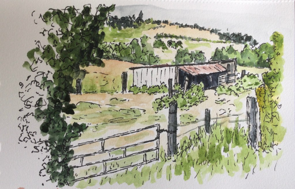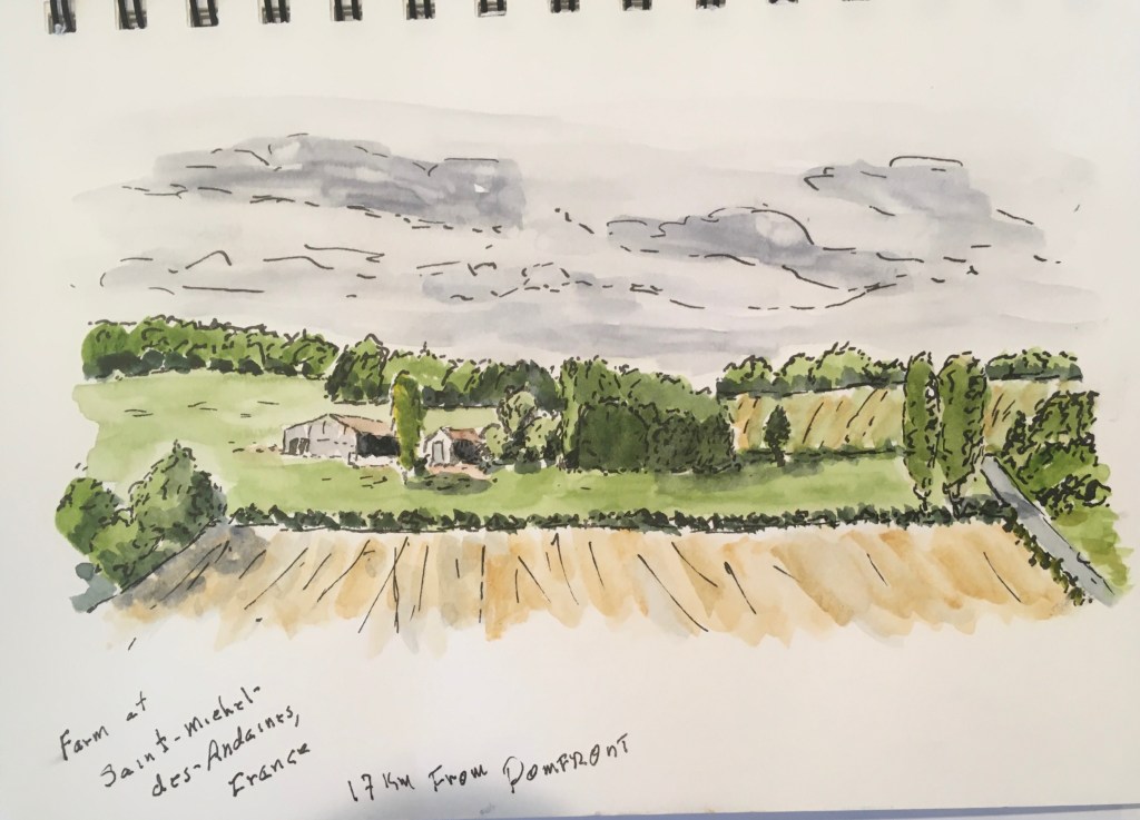 Two more farms and buildings in the area – it is a beautiful place. Even more alluring these days when we have renewed our efforts to stay-in and stay-away. But I never give up hope, one day we will wander these narrow roads, sketching and, in Tricia’s case, taking photos. BTW if you have never visited her site and seen her travel photos you should check it out, Travels Through My Lens.