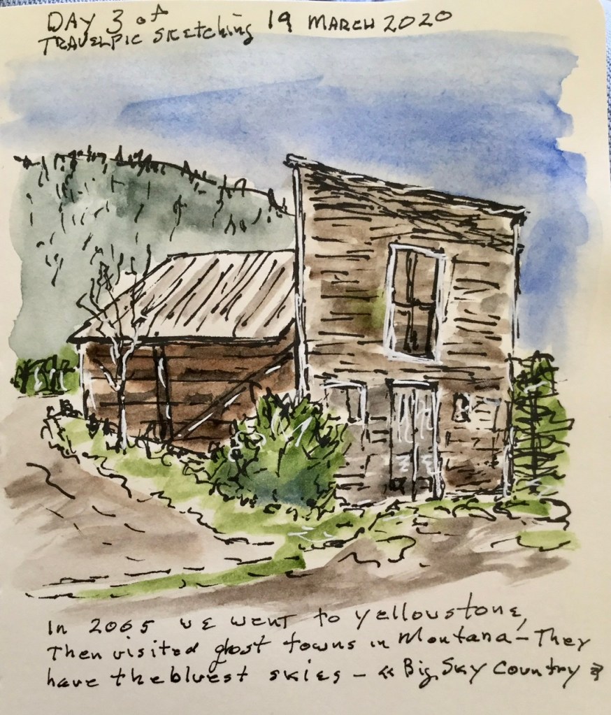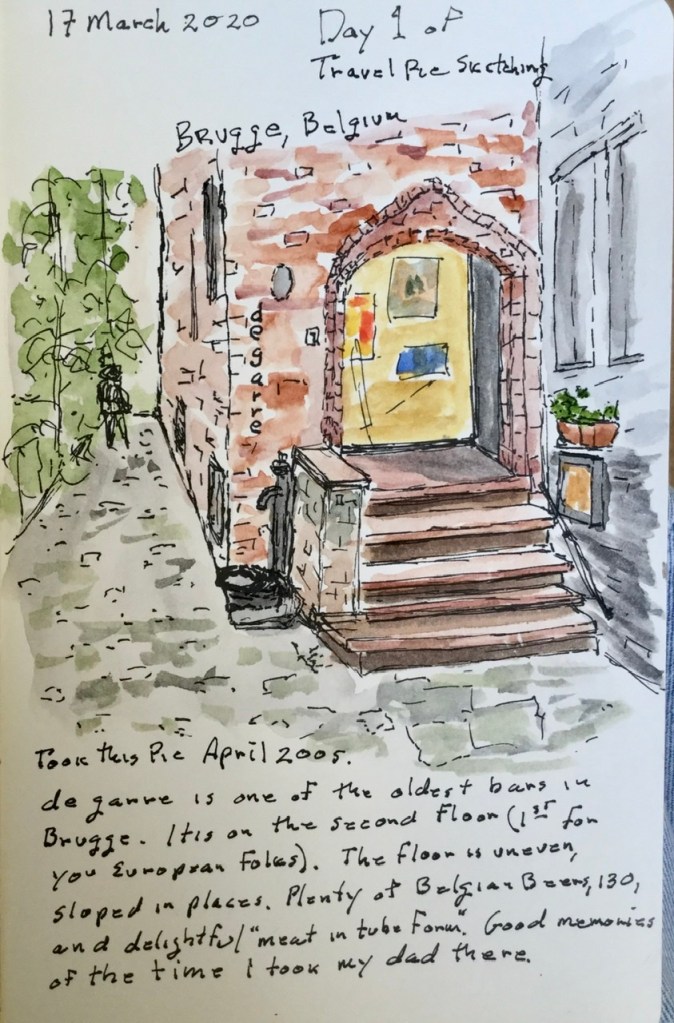 As the time of le confinement began I set out on a 30 day journey of past excursions – sketching from photos. I re-visited Belgium, Scotland, Montana, Barrow, Death Valley, France, Japan, and Dubai. Each sketch brought back a bit of the feeling of actually being there, a mini-voyage in my mind.