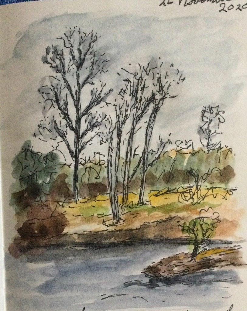 My current source of material is a book. Many years ago I planned to be a biologist, never happened and it is a long story, yet the interest in nature never left. I stumbled on to Kelly Brenner’s fascinating book, “Nature Obscura.” She describes some of the wonders of the natural world right in the neighborhood. So I have been sketching nature, using virtual map view, photographs, and observations while walking.
