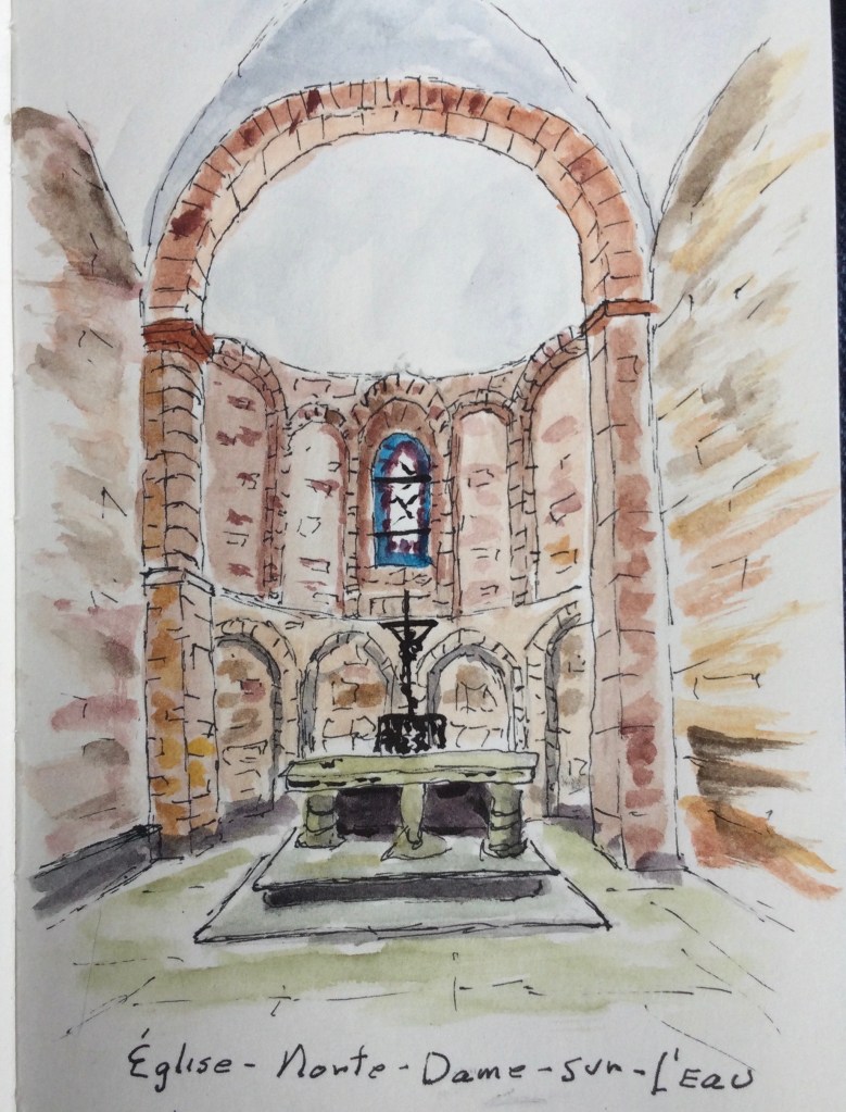 Last week I started a new sketchbook sketching flowers on the table, moved on to an Eastern Bluebird from a photo by Eunice Miller at Folsum Mill Studio, then of course something from France, Eglise Notre-Dame-sur-l’eau in Domfront, Normandy