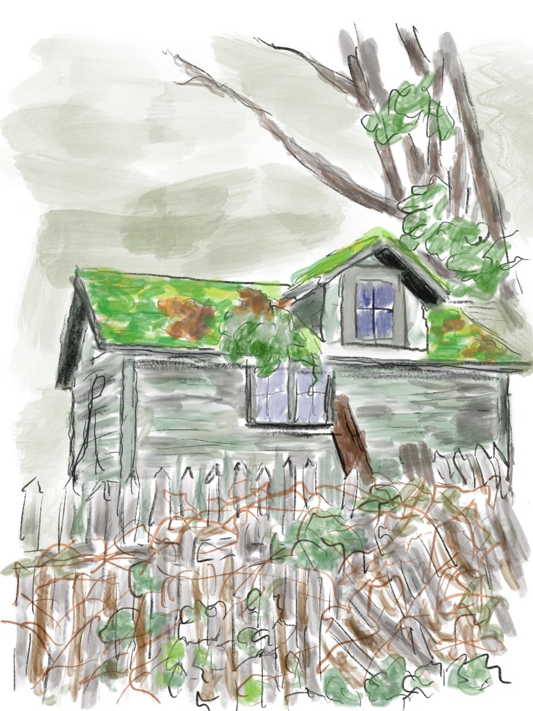 Moss was a topic from our Nature Obscura reading and sketching group so a sketch of an old moss covered shack near Taylor’s Shellfish Farm on Chuckanut drive seemed perfect.