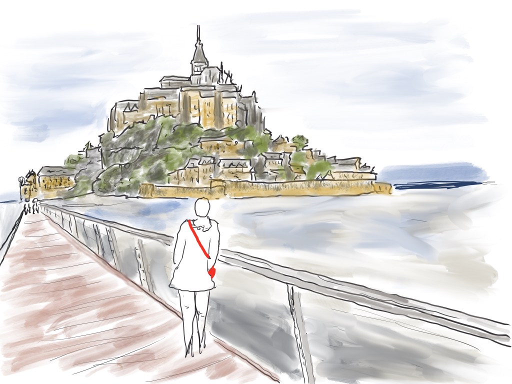 A year ago this week we visited one of the most iconic of locations in France, Mount-Saint-Michele in Normandy. Under normal circumstances it is one of those places I long to visit yet often forgo visiting due to the crowds – thus my ambivalent feelings toward ever revisiting the Eiffel Tower. Thanks to the weather, and sadly, COVID already slowing travel, it was almost empty. An amazing place. This is from a photo I took on the walkway across the tide flats, Tricia of Travels Through My Lens fame taking it all in from a distance.
