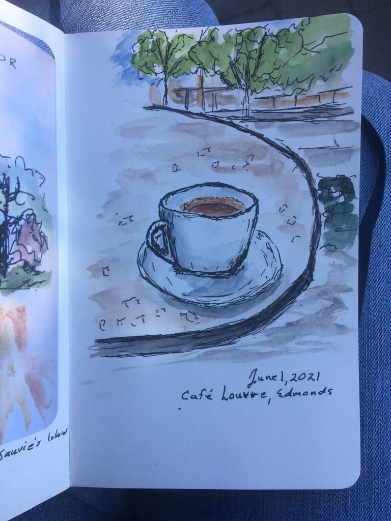 One of the pleasant surprises was that most of the places I went this week were maskless for vaccinated folks. Then at Cafe Louvre in Edmonds I actually had my café noisette in a real glass cup and saucer, normalcy is creeping back!