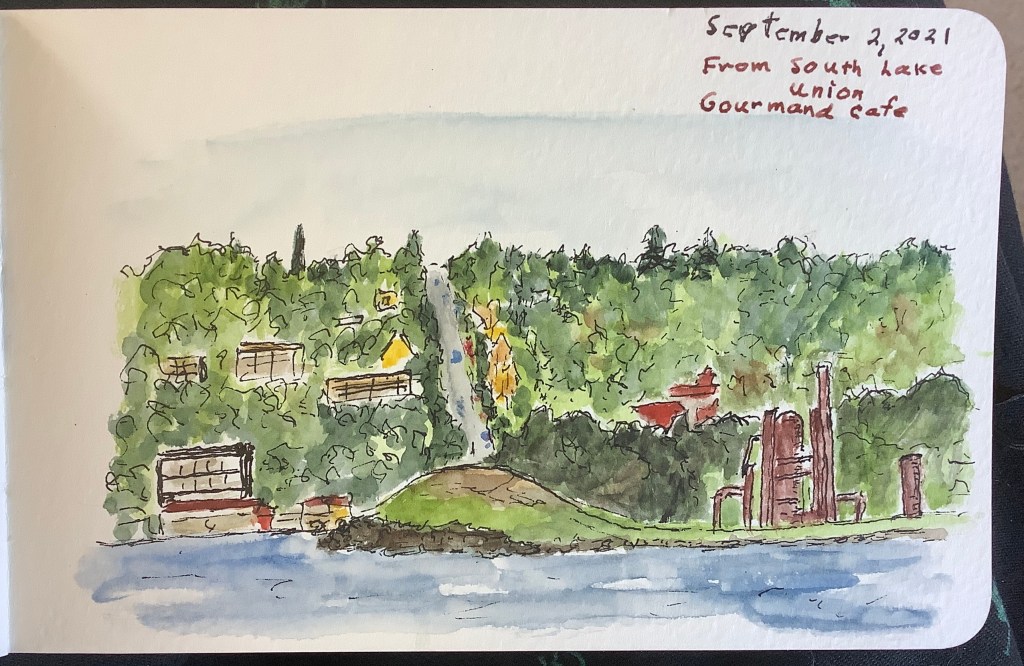 Followers of this blog know my compulsiveness about packing light. Tricia and I traveled for five weeks in Scotland, France and Italy a few years back, each of us had one carry-on-sized roller and a shoulder bag, we both admitted after the trip that we had clothes that we wore at most one time, if even that. My sketching kit is just as compact. (Be sure to check out Tricia’s photos from that trip on her blog)
