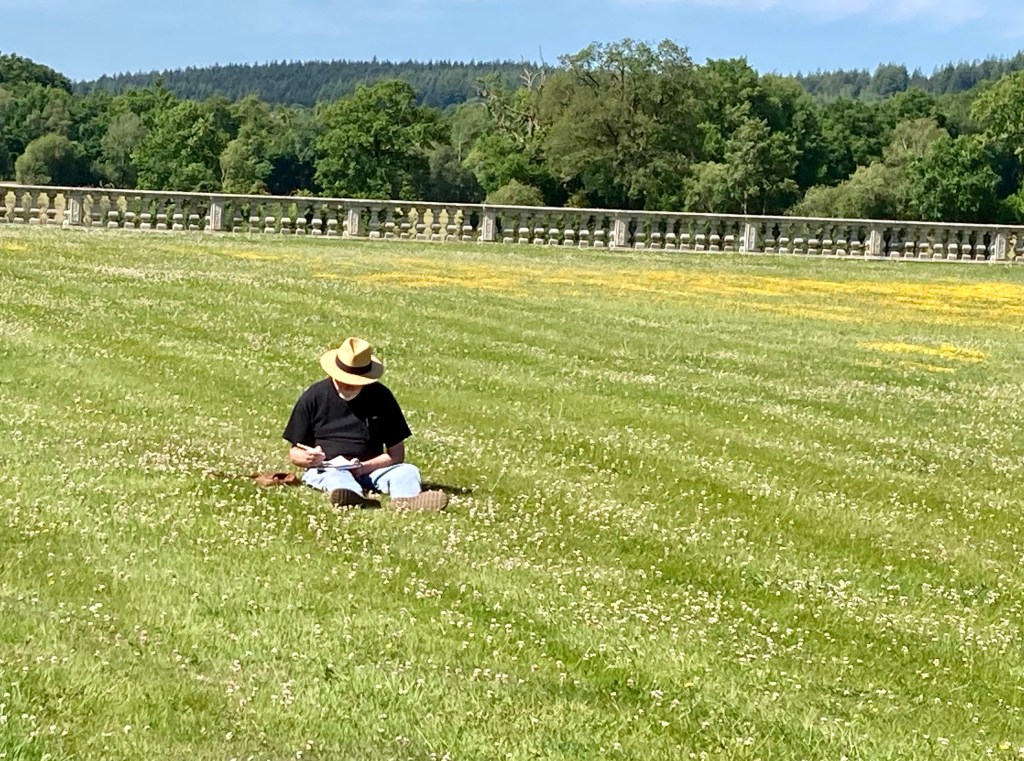 Sitting in the grass, sketching the gatehouse at Chateau de Carrouges. The chateau itself is amazing with a moat and a lake, but the gatehouse has a fairytale look about it. This sketch is from the inside looking out, can’t you just visualize a horse drawn carriage entering the grounds for some grand event?