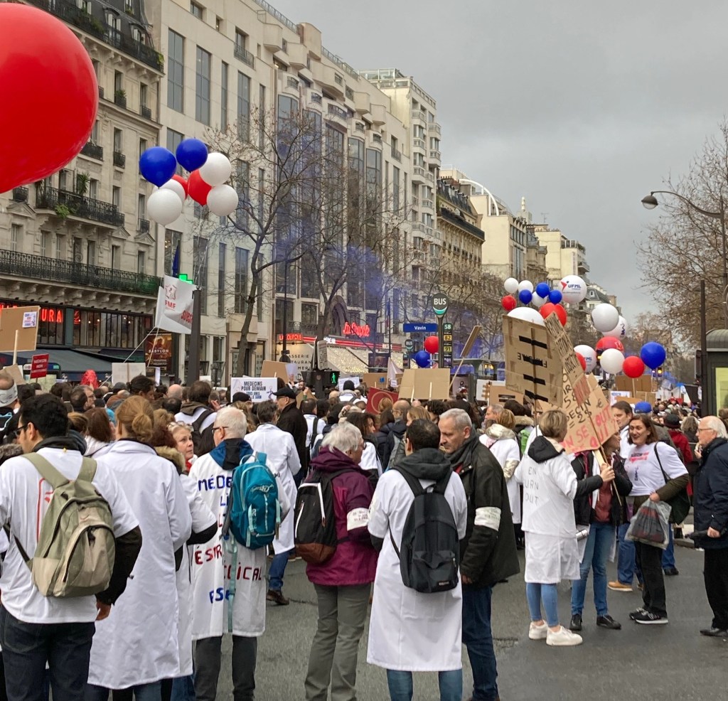 Tricia took this photo of a protest when we were in Paris in January – Healthcare workers.