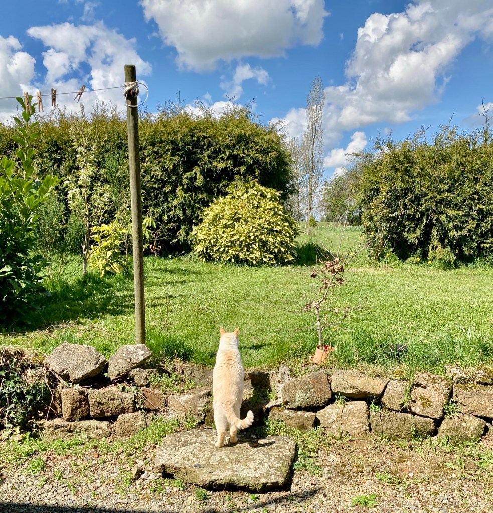 Adding to our stress was the vet’s diagnosis in January that Neville had a serious kidney failure in progress, he talked about needing regular IV’s of fluids etc., just to survive, quite serious. I doubted that he would actually live to make the trip to France. Well make it to Normandie he did, after 21 hours in a carrier – checking in at the airport, waiting for the flight, ten hours under the seat at my feet, then a four hour car ride to where we live in Normandie. Neville did quite well. Oh! And never an IV.
