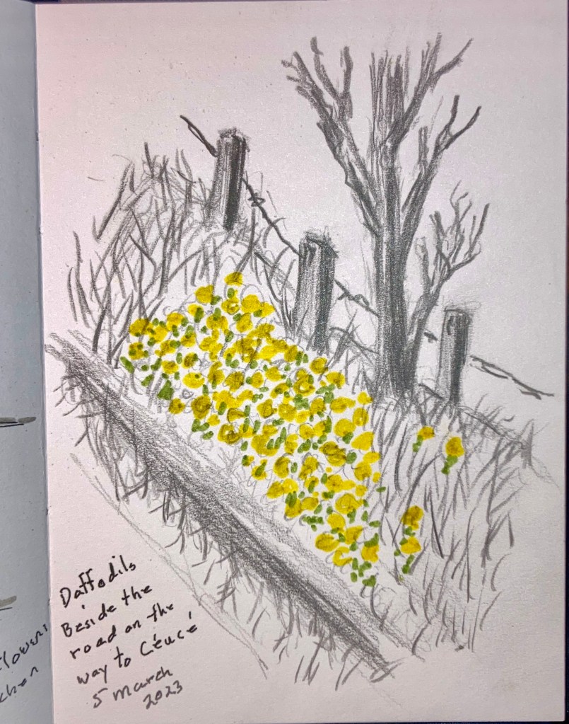 Your Good Friday sketch is wonderful in it’s simplicity and strong composition. Enjoy sketching in the sun, and I look forward to seeing blooming flowers in May!