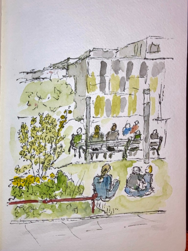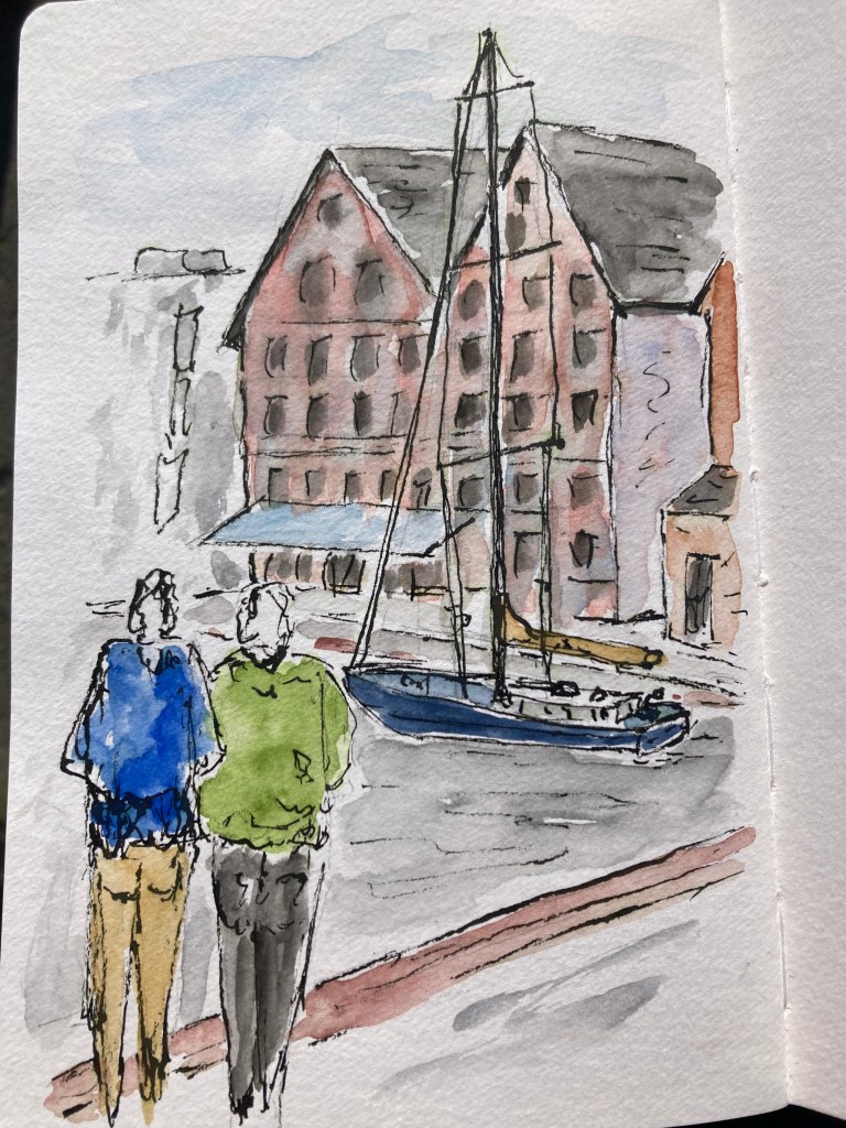 Especially loved the one of you holding up your sketch in front of the fishing boats you’d just captured on paper. Really lovely –and seems to perfectly capture that place. Between the two of you there will be many, many captured memories both sketched and photographed. The adventures continue