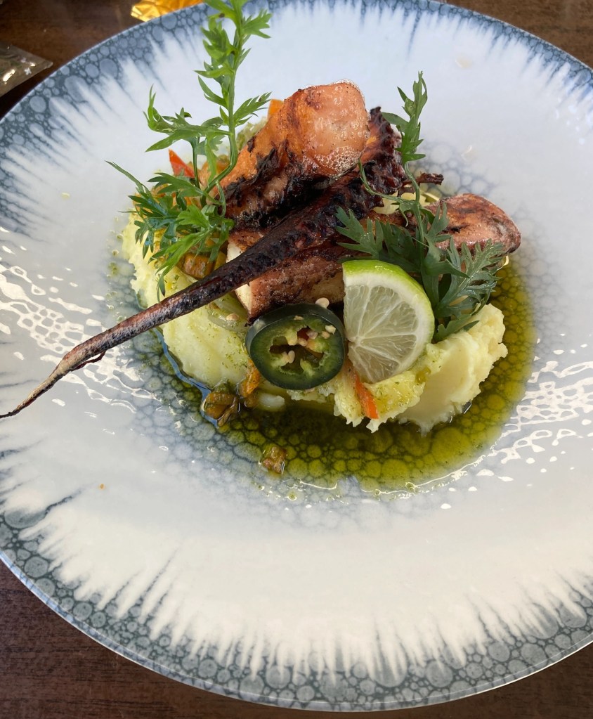 Sunday we wandered through a couple of parks, then headed for lunch back near the water – Cote Resto. After another plate of oysters, I had grilled octopus. Octopus is a delicate thing to cook just right, you want it charred, but if it is cooked too long it gets rubbery. This one was perfect.