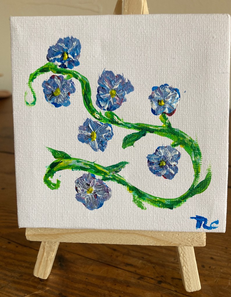 Our neighbor had a birthday so I did a painting for her on the mini-canvas she gave me for my birthday a year ago.