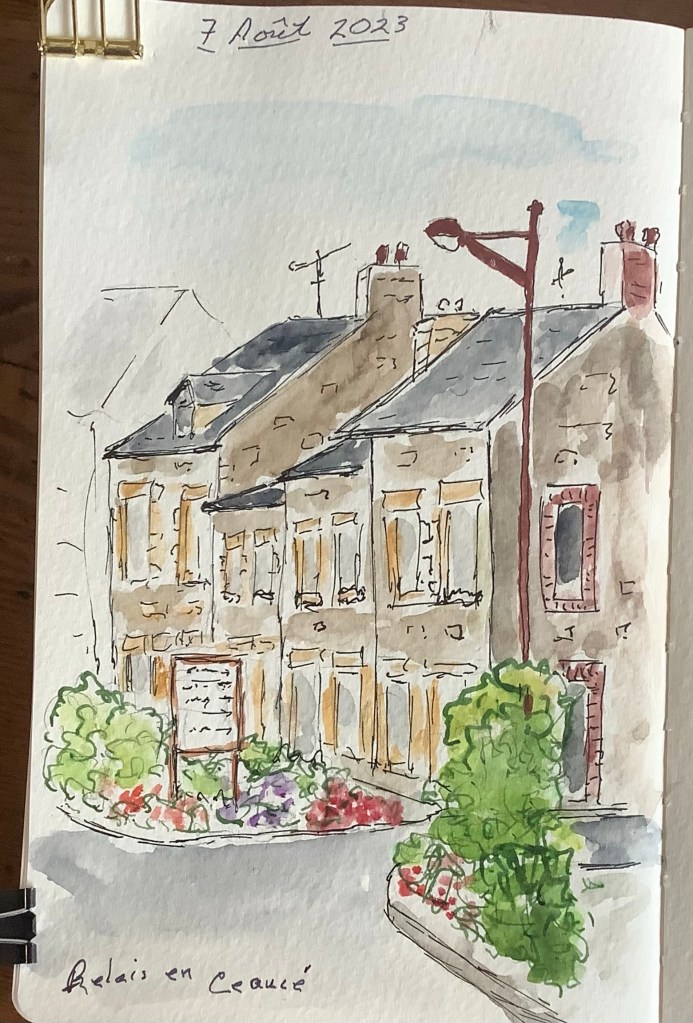 Here is a sketch in Ceaucé that I did from the cafe, there is only one in town.