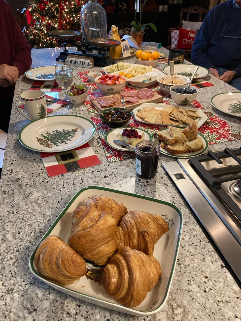 They invited friends over for a couple of holiday get-togethers, Shirley put out quite a spread. Since they love France there was of course croissant.