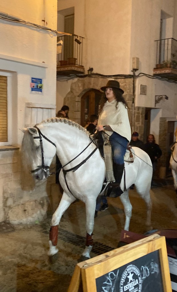We were in Peñiscola during the Festival of St. Anthony. On the closing weekend of the festival they spread sand on the main route through the castle area where we were staying. Then on Saturday there was a procession of horses and horse-drawn carts. Sunday morning we went to church at Santa Maria de Peñiscola. We exited the church and discovered a crowed lined up for a second procession of horses and carts. I am not sure of the significance of the horses but it was quite a thing to see.