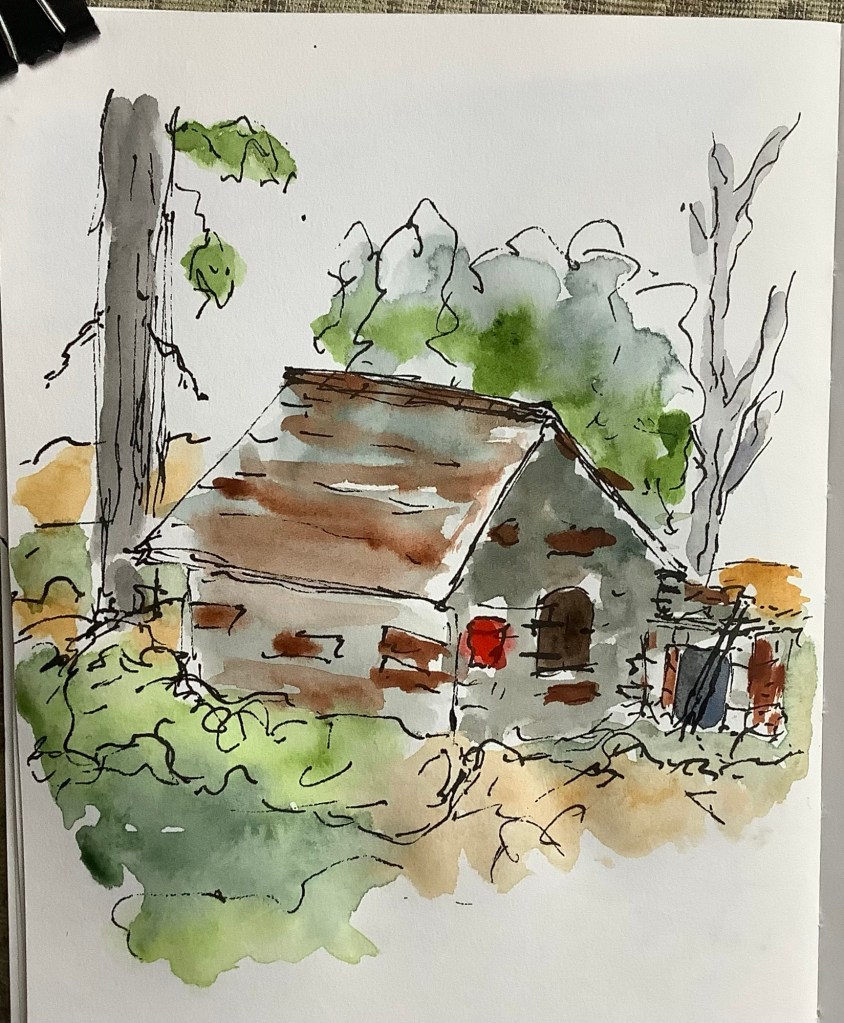 Here are the two sketches I did this week, quite different in subject matter, and a bit different in style, yet I think they both work, and the reactions of followers supports that. They both have a focal point, a bit of energy, and contrasts in colors.;