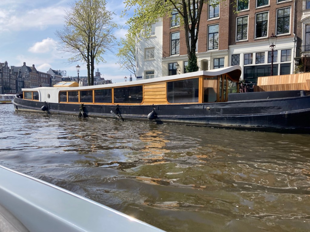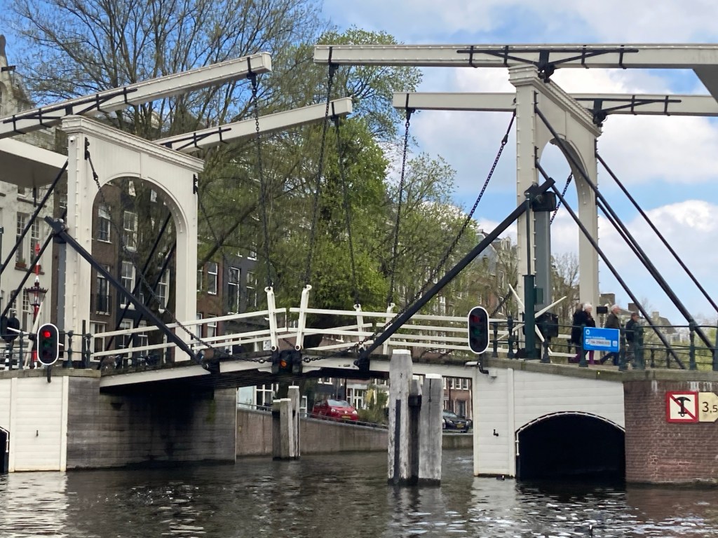 We took an open boat canal tour, the sun came out just to make it a good day. We passed by many houseboats, some rather beautiful, but this one at over a million Euros is a bit over our budget. The counterbalanced bridges are quite something.