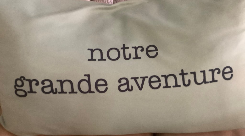 Enjoyed every single sketch and every single photo of food. (Why didn’t you invite us to dinner….?) The photo showing Tricia with ‘neighbors’ will be a memory for both of you of your time in Normandy. And your final paragraph served to further inspire us to follow our own ‘Votre Grande Aventure”–(nice pillow from C & JJ 🙂)