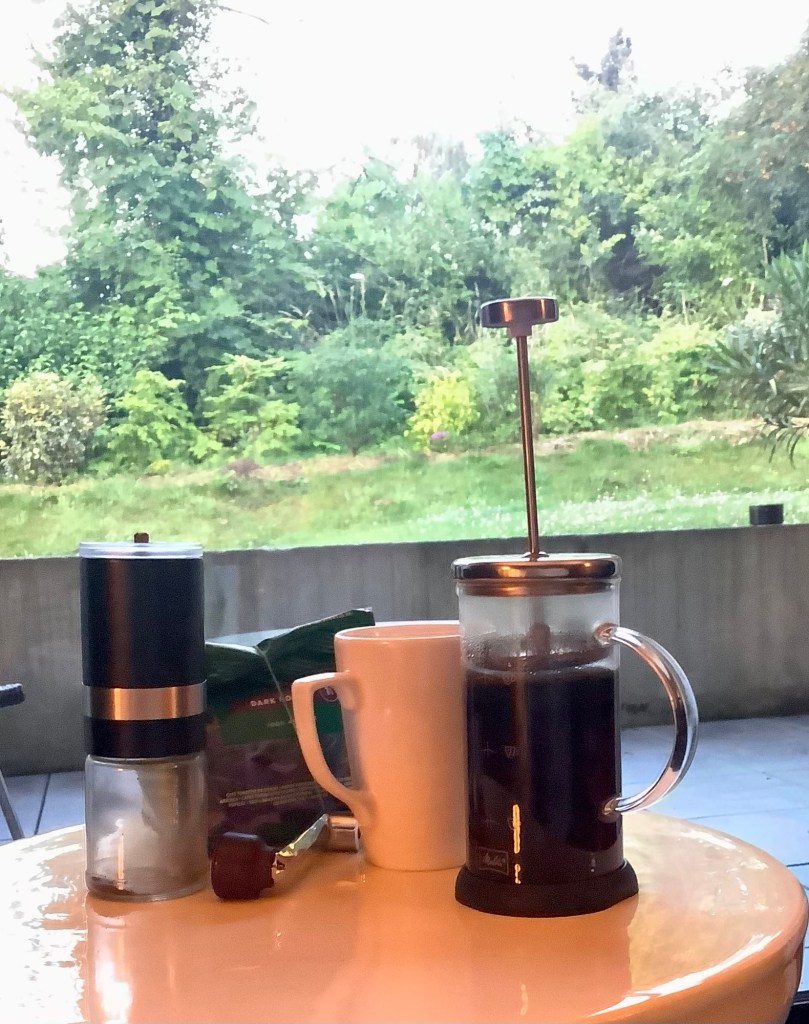 This morning I had a much needed relaxing coffee with my morning readings. I know… who carries a press and a grinder to a hotel, je fais.
