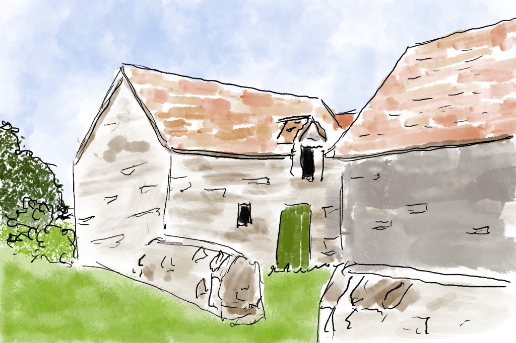 Tip – use a darker line for the rooftop where it meets the sky, it will make the building stand out.