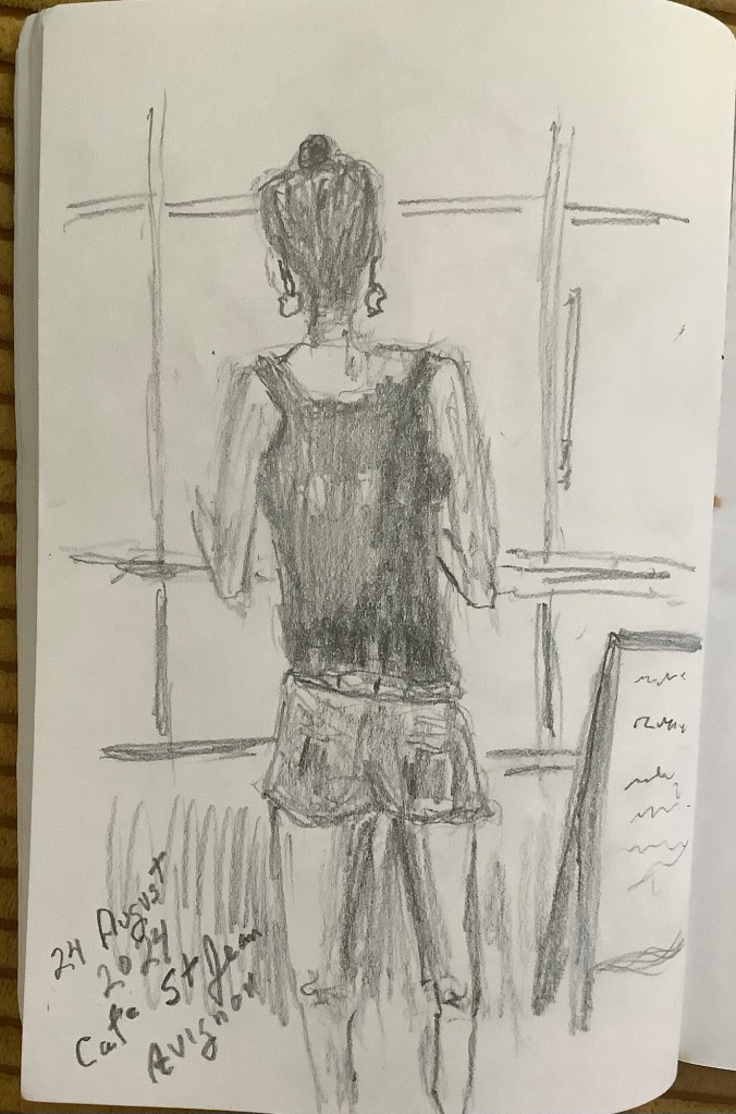 Another afternoon at Pas Sages – this is as much of a local feel as I have had so far. The one thing that was absent in our French stay was immersion in the culture and the language. Here in Avignon we are surrounded. (Note: We did have three weeks in Nanterre.) Many of the people speak as much English as I do French, yet we communicate. More than that, I see the interactions of the locals. After many days at Pas Sages some regulars nod when I come in, I am becoming a regular.