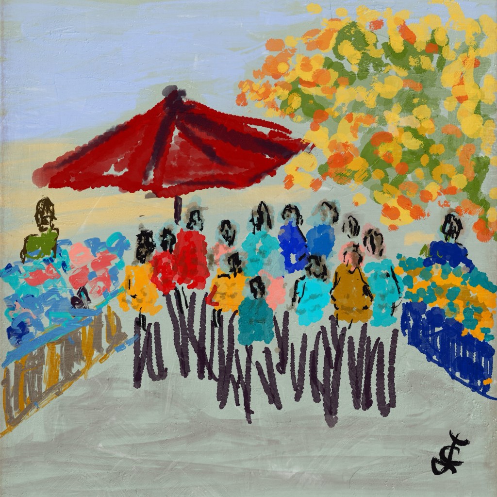 I just love this post – really captures your day, I particularly like the bright coloured group at the market. You have certainly helped to start my Saturday off well!