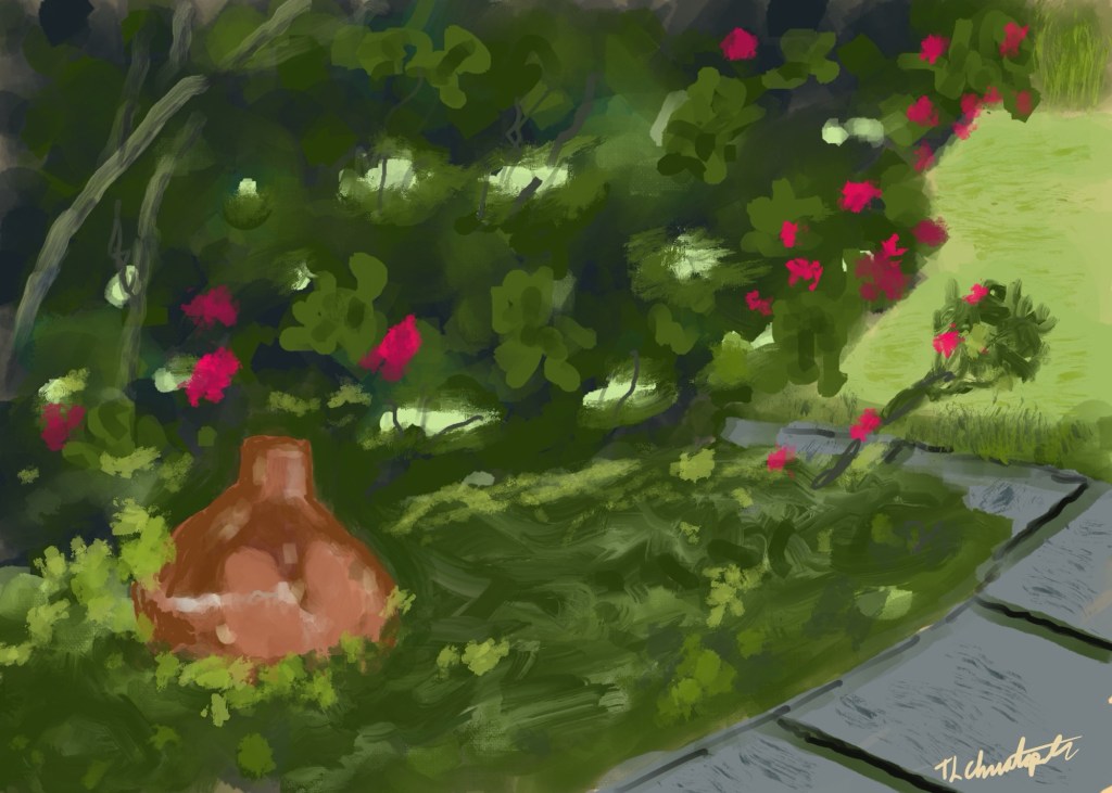 For three weeks I have been looking forward to painting with oils, so here is my window on the world these days.