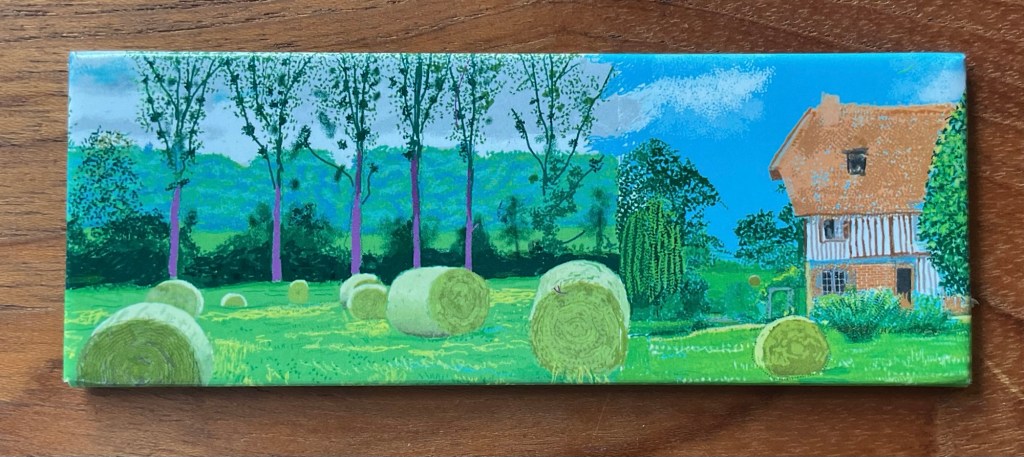 Our view is always a treat – a daily parade of dogs walking their pets. When we were in Bayeux, in Normandy, to see the famous tapestry, we were also treated to a large panoramic digital painting by David Hockney – “A Year in Normandie.” I was amazed and encouraged that an artist of his fame is also a major digital painter. We bought a refrigerator magnet of a portion of the panorama.