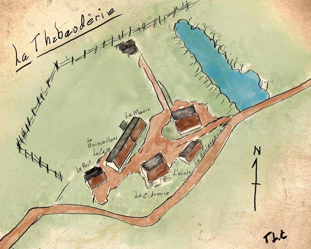 Slowly I am progressing on the small book about our time in La Thebauderie. I found a publishing platform, Maxim, downloaded their template, and have been collecting the sketches. Here is a map I made of La Thebauderie for the book.