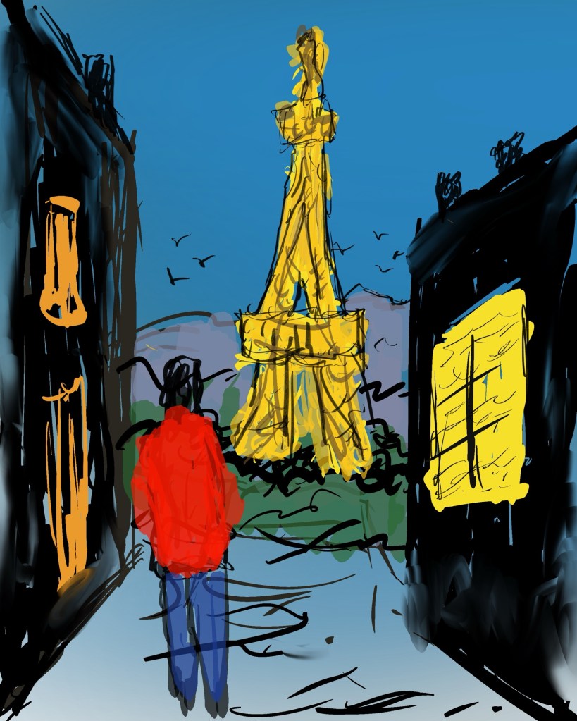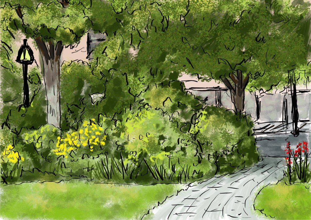 The weather has been wonderful so I went back to Tanner Springs Park, this time I did a sketch with Procreate. These days it seems I am either doing oils, or using my iPad. Hope I don’t forget how to do watercolor…