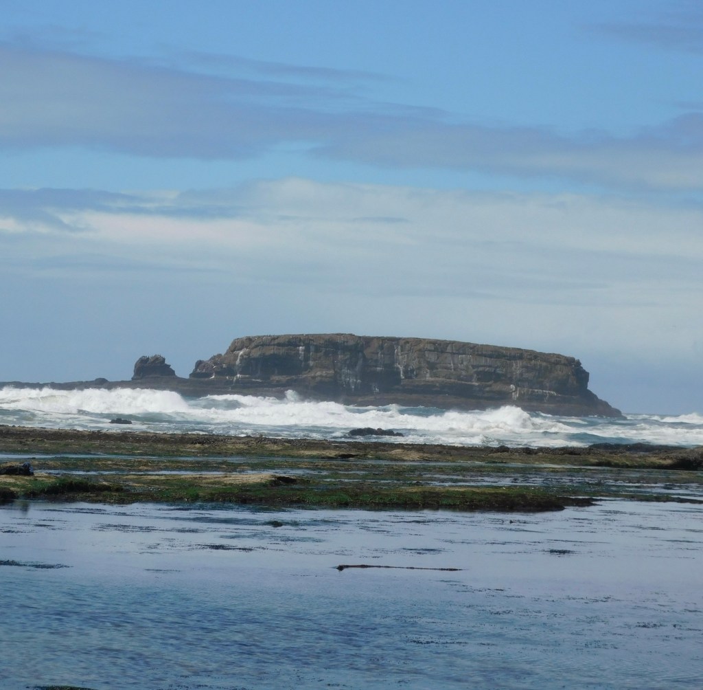 Here is a photo Tricia took of Gull Rock with me painting, and one where I cropped me out of it. The photo without me in it is a beautiful photo of that wild water and rock, but the one with me in it adds interest and tells a story. Tricia does this well, though I am not sure of her choice for a model.