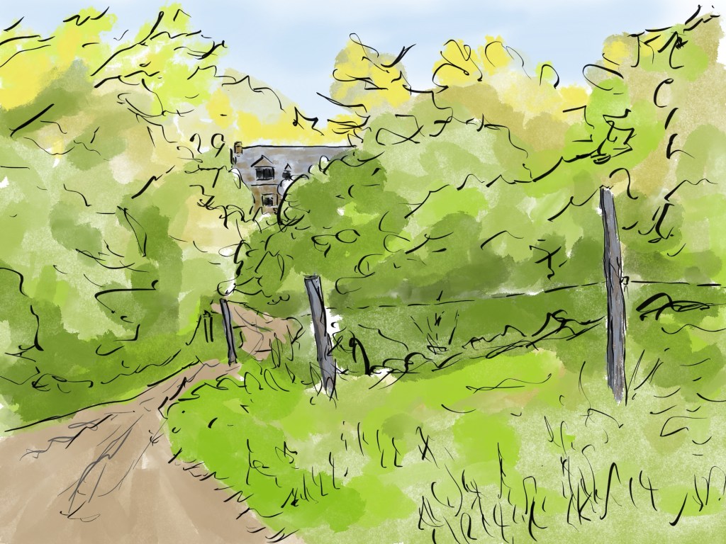 Including people in your sketches adds interest and perspective, and it turns it into a story – it is quite simple and they don’t have to be portraits. Check this sketch I did of a road we walked often near our home in France. The first is without a person, then I added a person and it changes it, I think for the better.