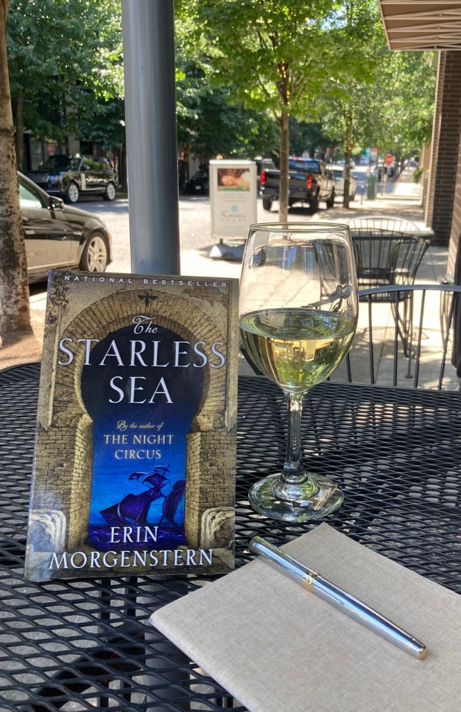 Wednesday was a good day – a trip to Oblation Paper & Printing, a new book from Powell’s, and a bit of café culture at Via Delizia. As I stepped through the door the familiar waiter recognized me, I indicated I would sit outside, all I asked was if he remembered the wine I usually have, he nodded yes. A few minutes later he brought out a French white wine to the table I was sitting at under a blue umbrella. I wrote a letter to my friend Tim; he will appreciate the new ink from my stop at Oblation – Writer’s Blood, by Diamine Ink, a 160 year old company in the UK. Then I settled in to start on the new novel I had just procured at Powell’s – The Starless Sea by Erin Morgenstern. It was recommended by my daughter, Alexis, how could I doubt that? She said it is her favorite book ever.