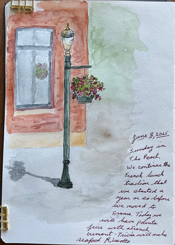 While she cooked I sketched the view out our window. This was the first time that I have done ink and watercolor in a while, it still works.