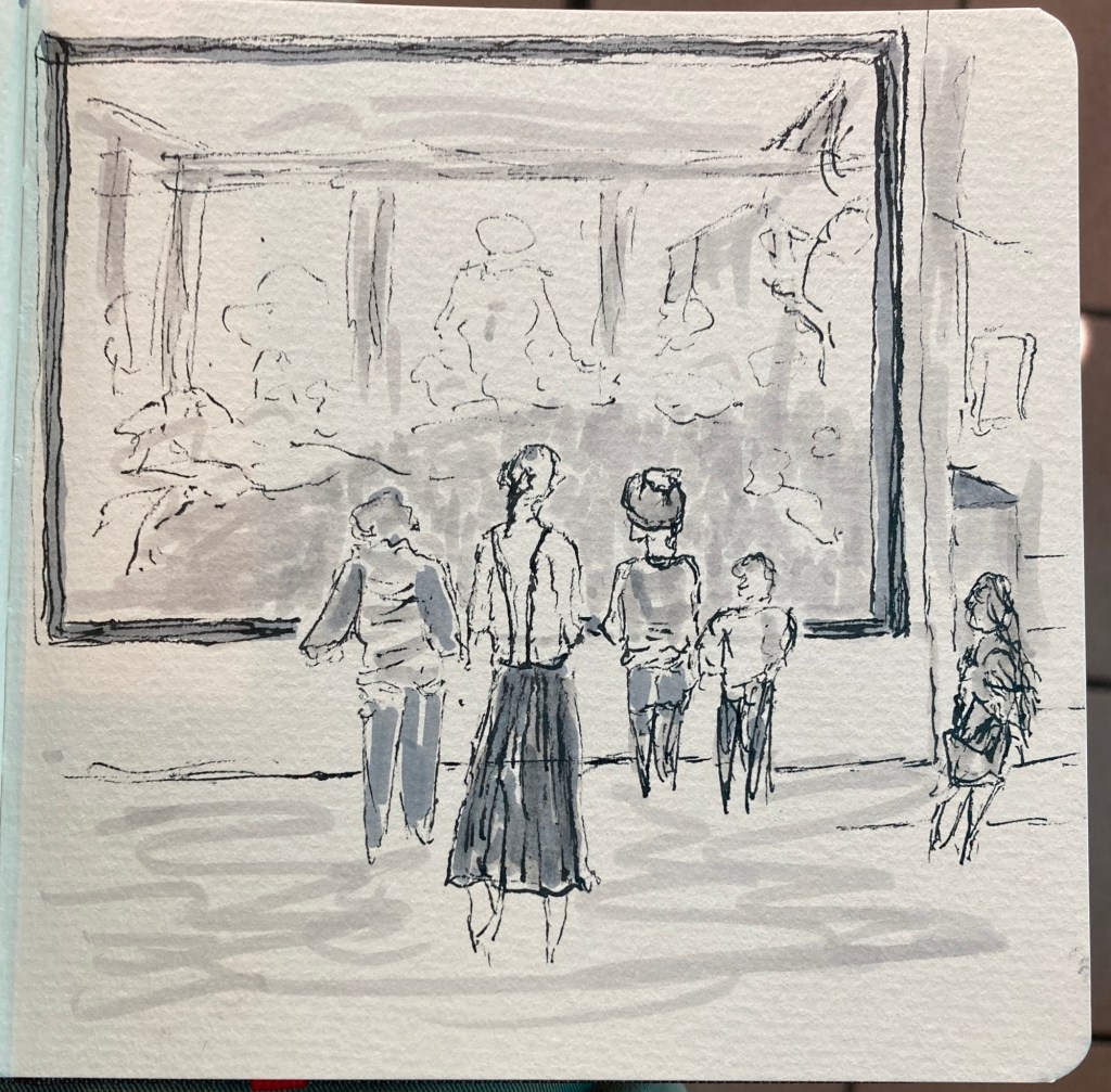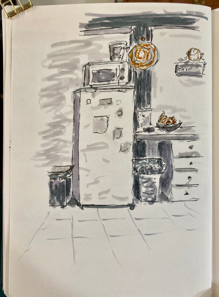 We all go through phases as we journey through our art. It is good to revisit some of the styles that we may have neglected. While watching a slide show of our time in France I was reminded of how much I like ink sketching, without a lot of color. I started my art with pen and ink, so today I will go out and sketch a bit in that style.