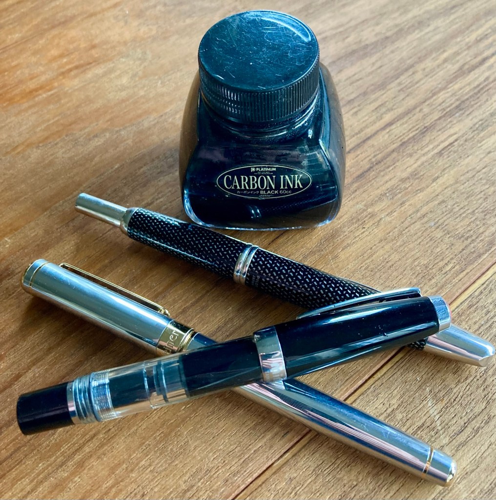 At first I carried Micron pens for sketching, but eventually switched to fountain pens exclusively. So I have a lot of experience to share. Here are three that have logged many thousands of miles – they are like friends.