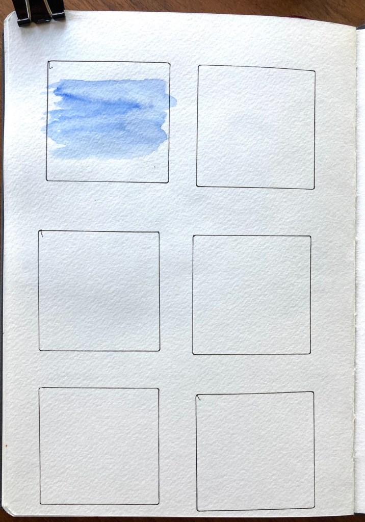 Walking down to the beach on this brilliant sunny day you are hit with the blue of the sky or the blue of the ocean. So put some blue paint in the box, whatever color of blue feels right. What we know about color is that it is directly connected with emotion and memory – just the swatch of blue will trigger a memory when you see it in the future. When the paint is dry use your micron pen to add a note or two, maybe a thought about why it was so memorable.