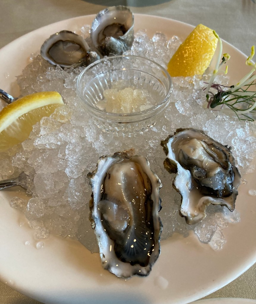 We started off, as usual with raw oysters and bubbles. They have quite a selection which makes deciding a challenge. Maybe it is just bias, but we both think the Puget Sound oysters are the best.