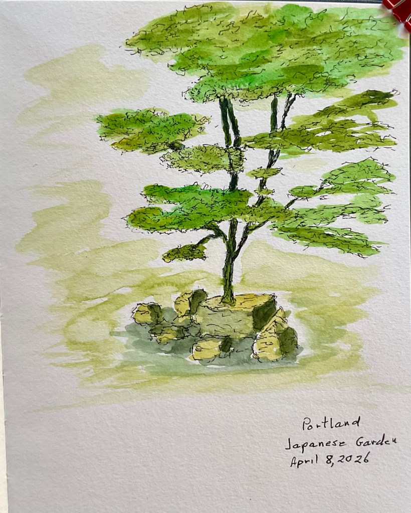 Another of Portland’s best gardens is the Japanese Garden at Washington Park. After a bit of exploring with Tricia I settled in next to the pond for a sketch.