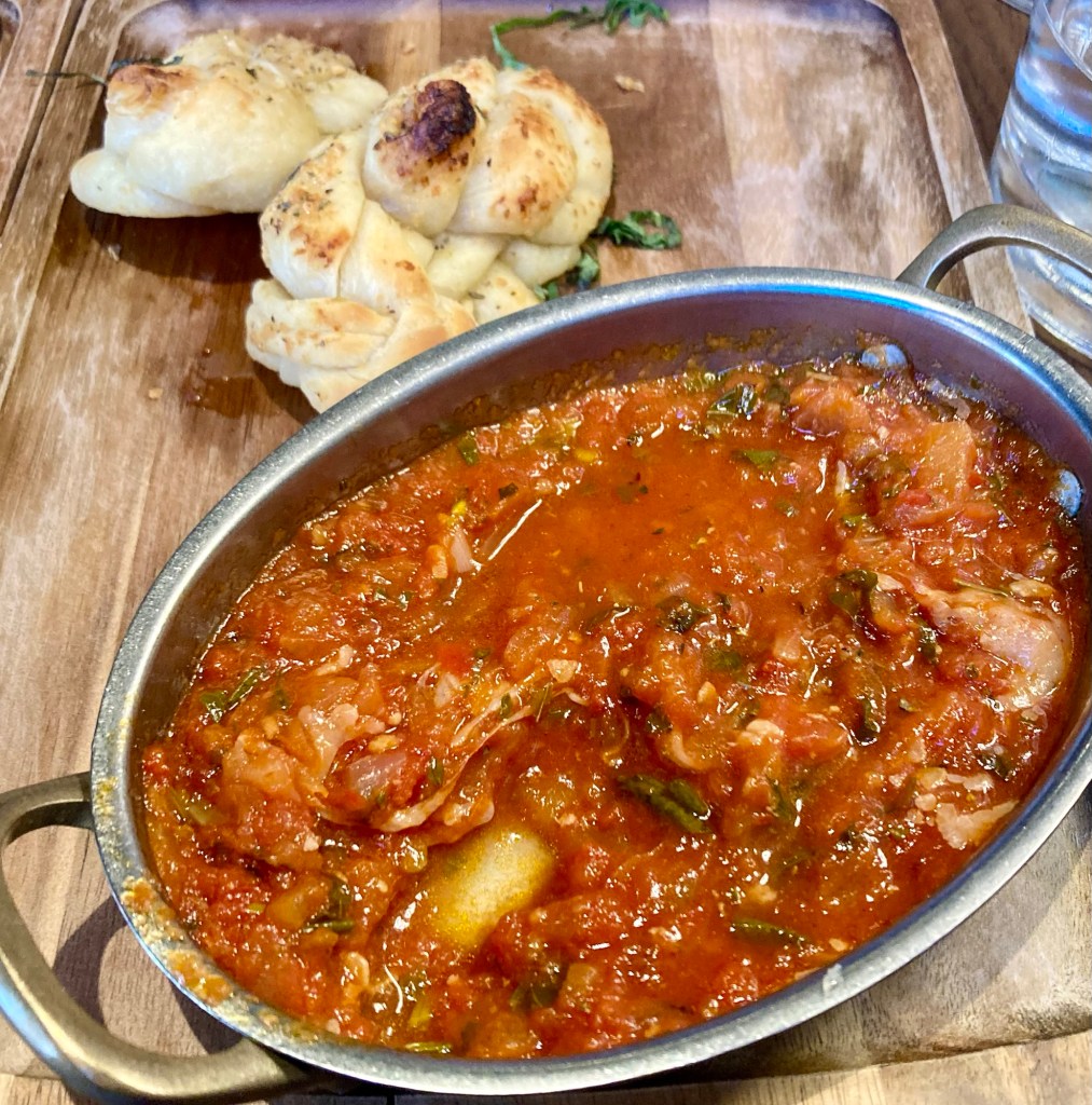 The service, ambience, and food make it at the top of our list in the area that is for sure. We had the hot wings cauliflower, garlic knots, and shrimp in butter and garlic.